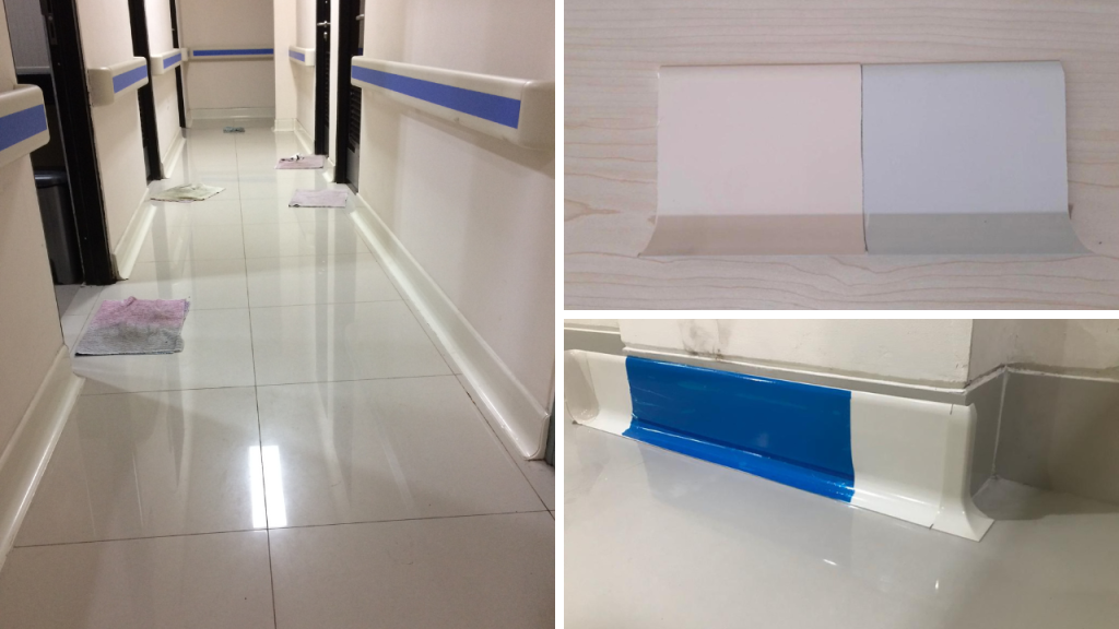 membersihkan bagian siku-siku (90°) untuk sudut dalam dan luar
